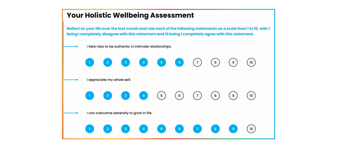 - Holistic Wellbeing Assessment: Quick, science-backed snapshot across all five domains.