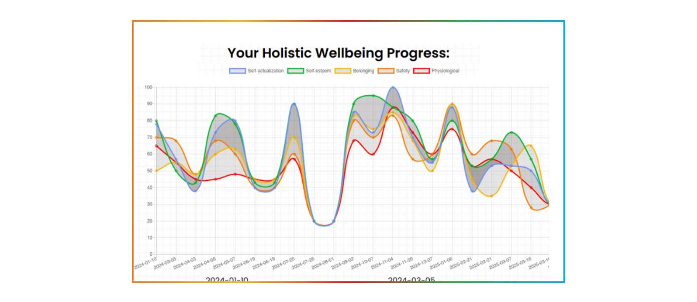 - Personalized Dashboards: Pie-chart visualizations that make wellbeing clear and intuitive.