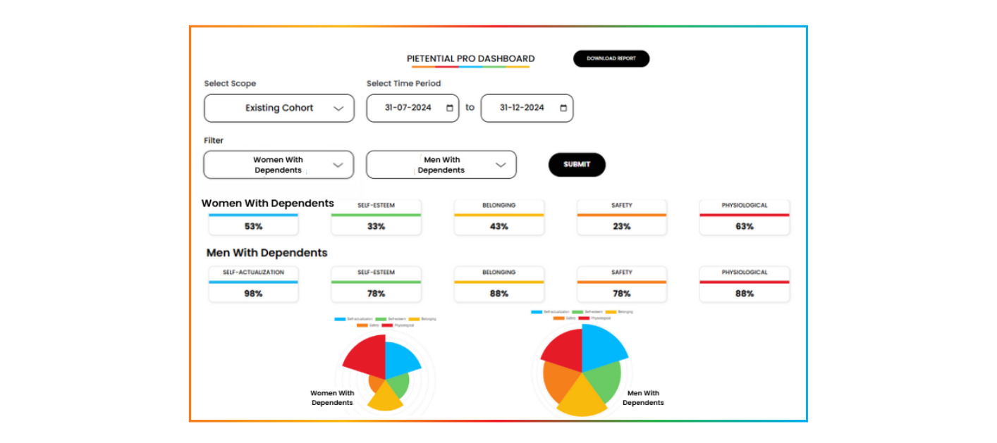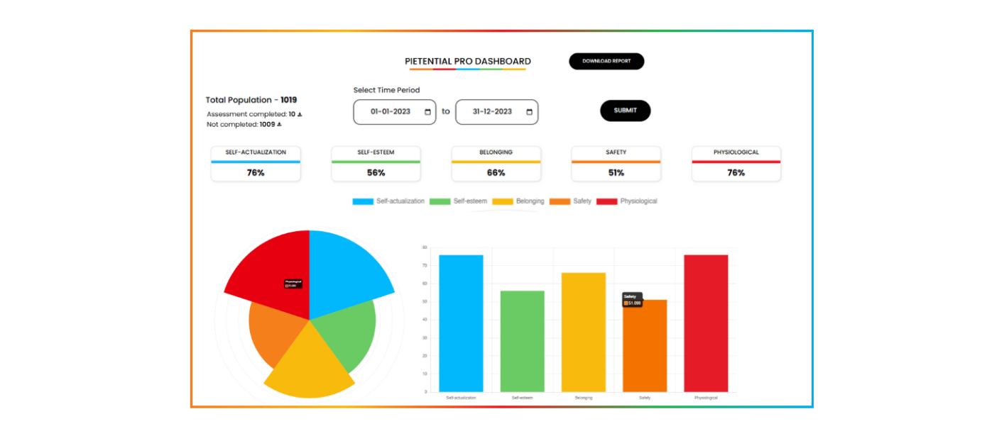 - Based on Maslow’s five domains of human needs, which Pietential has made measurable, visual, and trackable.