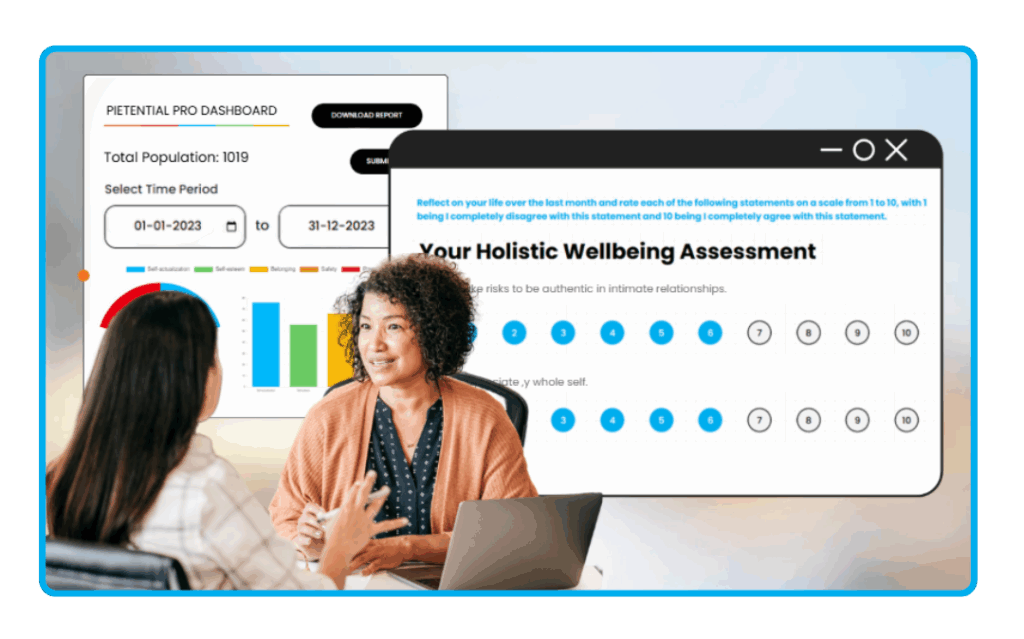 Pietential is an evidence-based, holistic wellbeing assessment platform inspired by Maslow’s Hierarchy of Needs. It empowers universities to assess, understand, monitor, and visualize the holistic wellbeing of their cohorts, including students, faculty, and staff. By using Pietential, universities can demonstrate internal program efficacy, compare the wellbeing of demographic cohorts within the university community, make data-driven decisions, and foster a culture of wellbeing across their campuses.